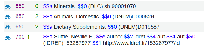 La valeur ‘agrovoc’ en $$2 d’une zone 650 donne accès au fichier d’autorité local AGROVOC, utilisé par la bibliothèque des Sciences agronomiques uniquement.